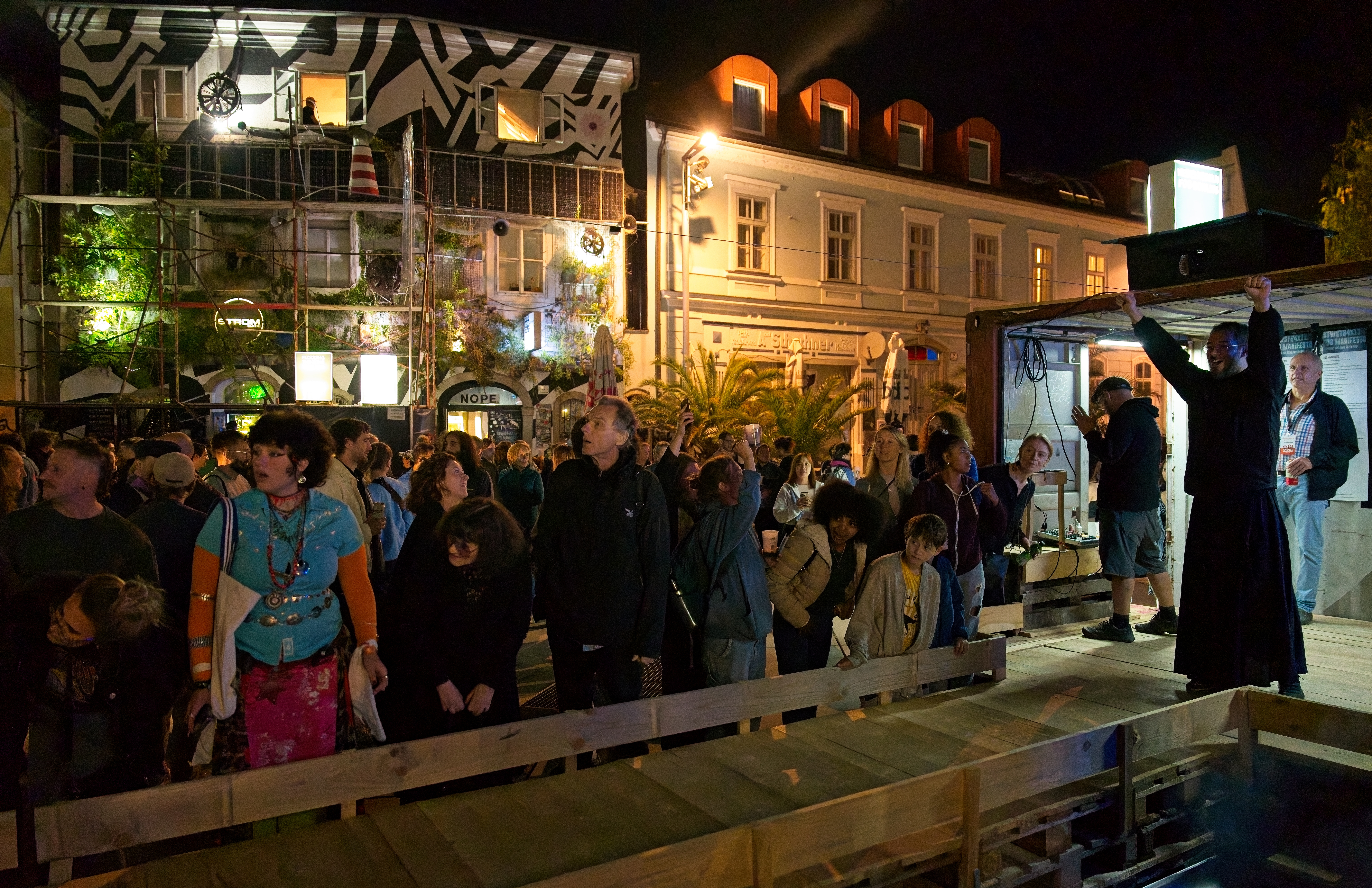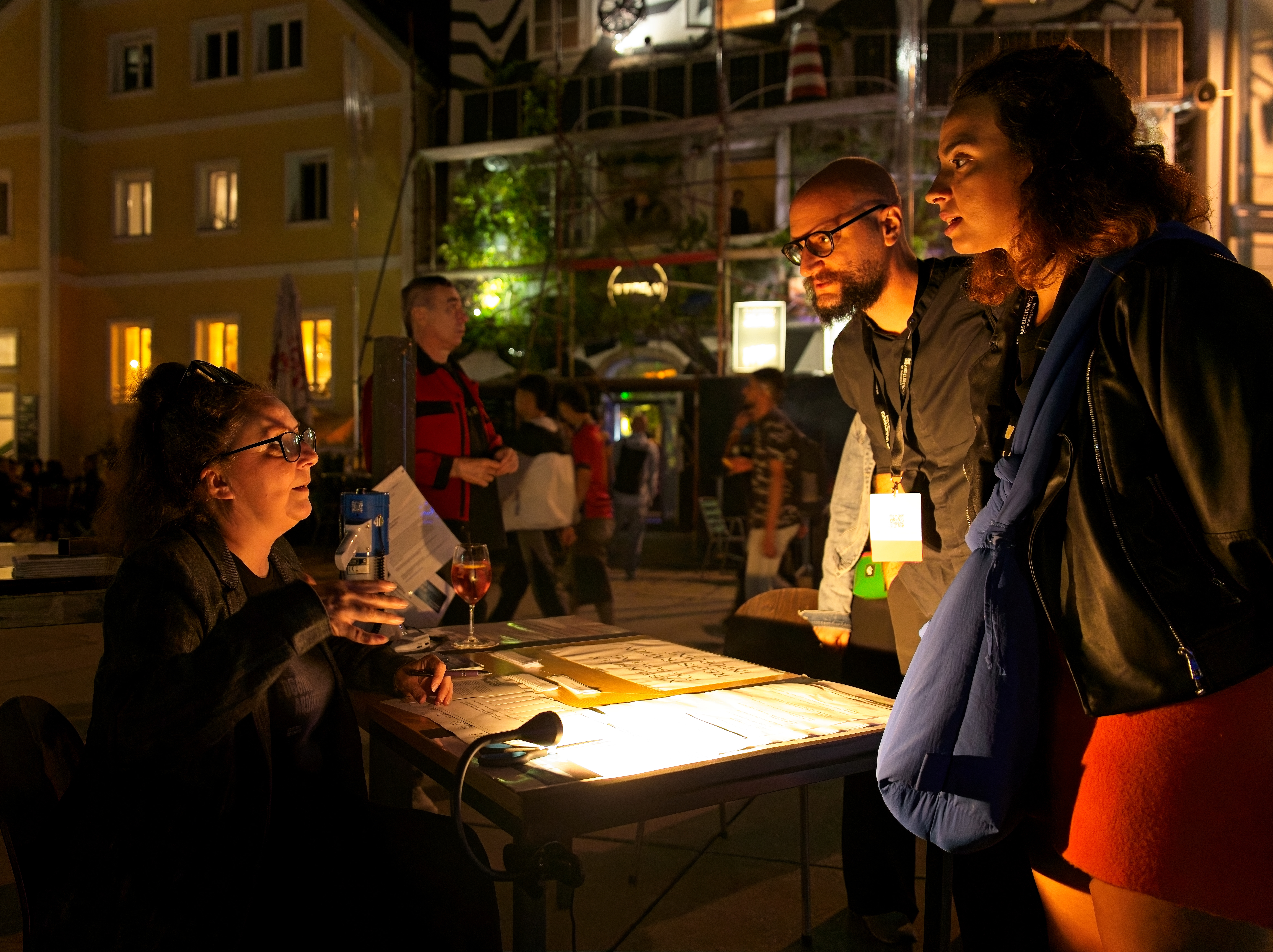 NEBELKEGELN is in some aspects also a paraphrase and reorganisation of the earlier Stadtwerkstatt project GLASFIEBER: While the earlier project featured a bowling tournament with glass pins as a splintering reality, with NEBELKEGELN Stadtwerkstatt today showcases the short path from decentralization to disorientation - and a state of dematerialization and dissolution.