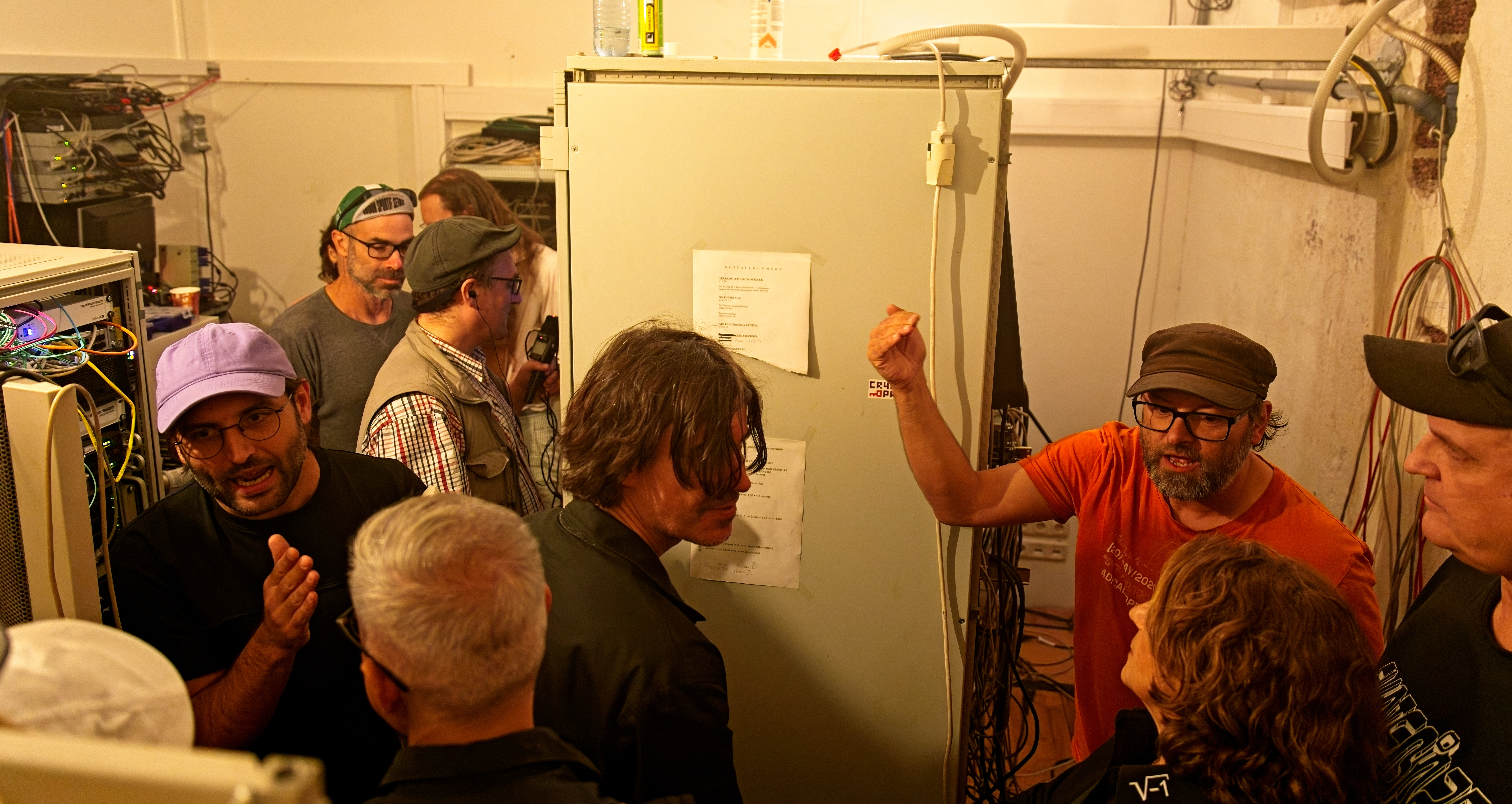 Wir beginnen mit einer atmosphärischen Tour durchs Haus und die physischen Orte der Netzwerke innerhalb der Stadtwerkstatt, einschließlich des Serverraums von servus.at. Davide Bevilacqua und Peter Wagenhuber, der von 2005 bis 2015 Systemadministrator bei servus.at war, leiten die Führung durchs Haus.