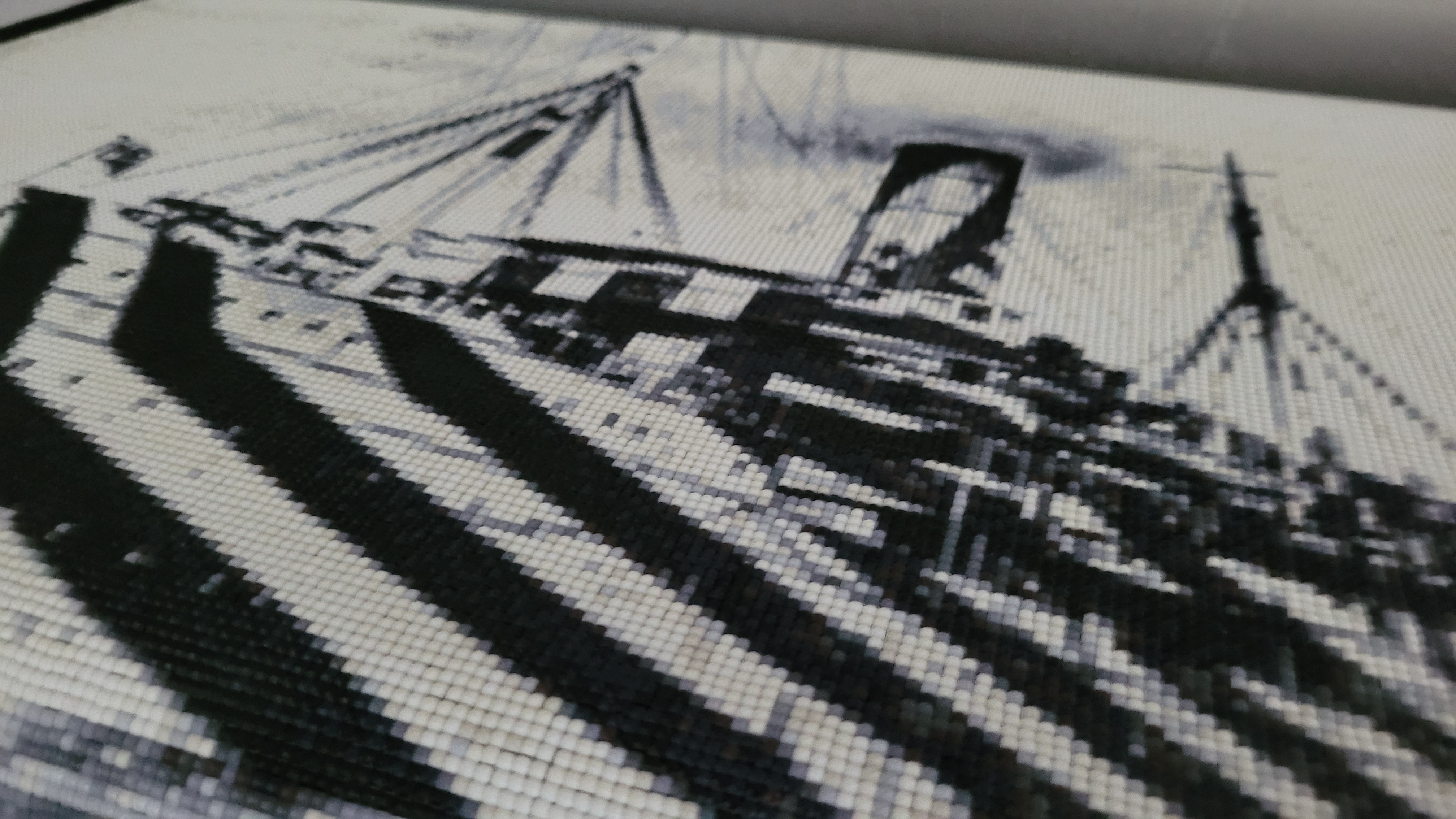 Elke Singer: Einen speziellen Gestaltungsauftrag hat in diesem Zusammenhang Elke Singer bekommen - unter dem Arbeitsansatz: Die Buchhaltung macht die Kunst. Es handelt sich um eine Ready-Made-Gestaltung eines Bildes im Razzle Dazzle Muster. Watch out.
