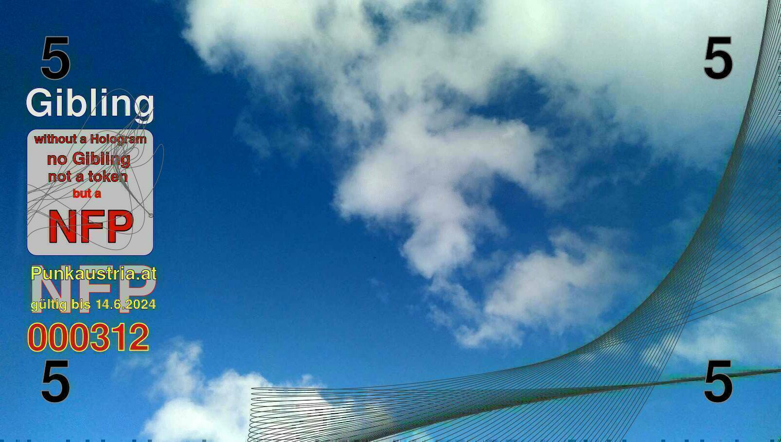 - NFP stays for "Non Fungible Picture". The 11th Edition of our community currency Gibling is built on series of unique pictures. Each image file is unique by serial number and has a own a sha256 checksum. This data is stored in the metatags of the next picture of the series. In the metatags of the first image of the series you can find this text signed in our cryptocurrency Givecoin, created in 2014; NFPs is a fork of the Givecoin blockchain. With the NFPs we extend our ECO system in the context of process art. In this way, the Infolab of the Stadtwerkstatt wants to show another critical position on the logical truths in the new digital information society. The serial number of this image is 312 and can also be found in the metatag "Original Transmission Reference". The checksum of the previous image is 48866da8beb69071e8769bbafd181f51d03ad5a877175b99022839c4036b5e89 and is also stored in the metatag: "Edit Status". To keep the process open, visit https://gibling.stwst.at and follow the instructions."
