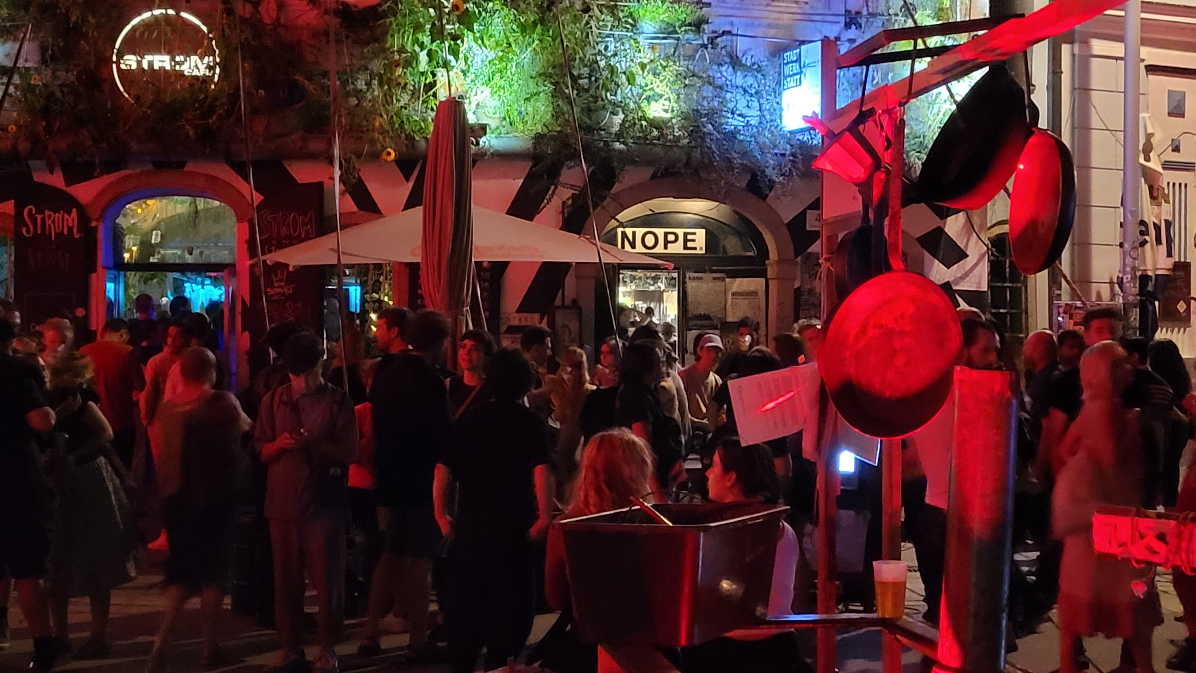 ALL IN ALL - Party life: The disorientation pattern and the organic-pneumatic coexistence of plants and machines extends into the house of the Stadtwerkstatt and becomes a space-bending machine and parallel world party zone in the time hole at night: with a guarantee of oblivion after the intoxication.
