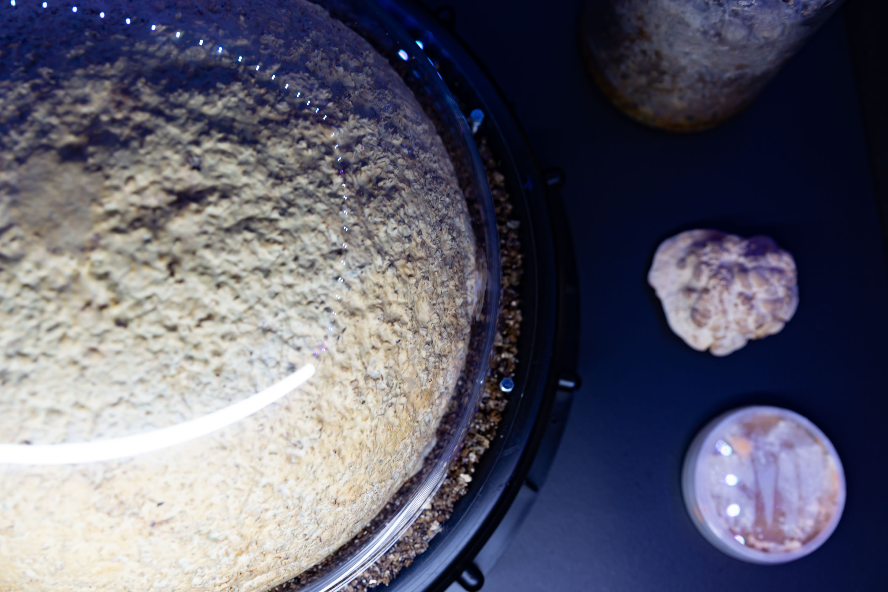 ++ entitate luzitransis [№ I+II]: phosphoreszierende Mycelien und Ecospären, gelaufen im Sept 2022 während STWST48x8 entitate luzitransis [№ I+II]
